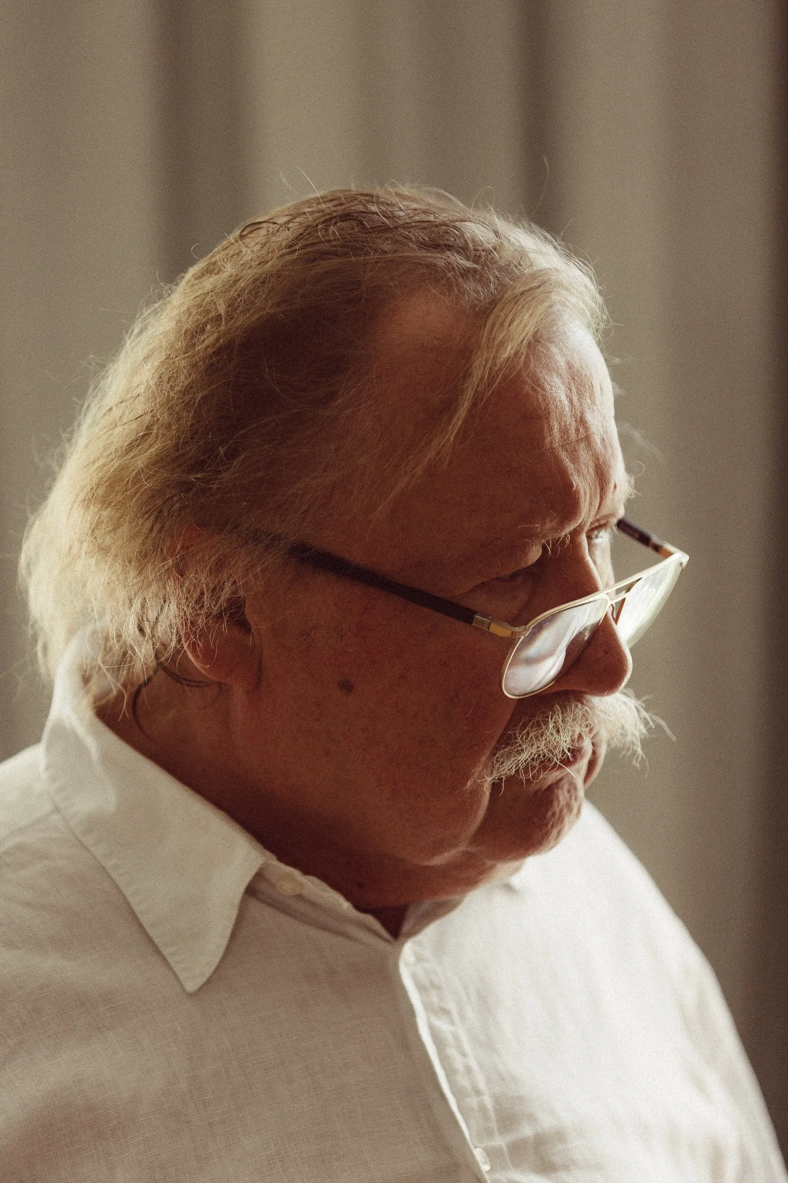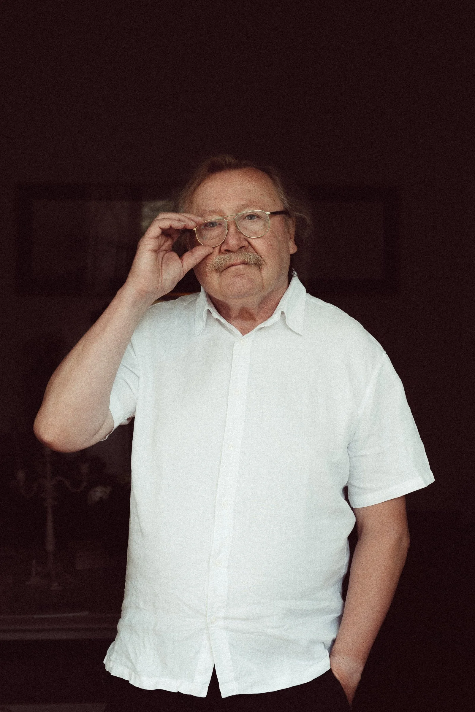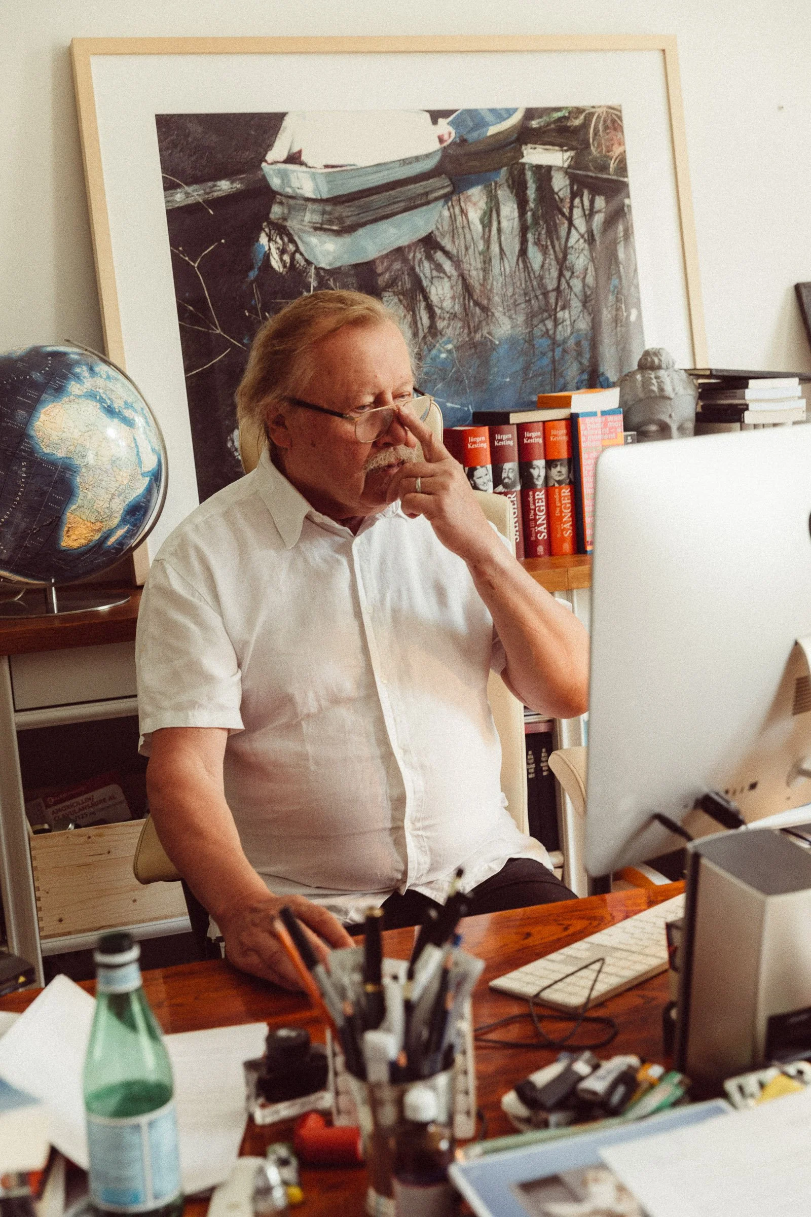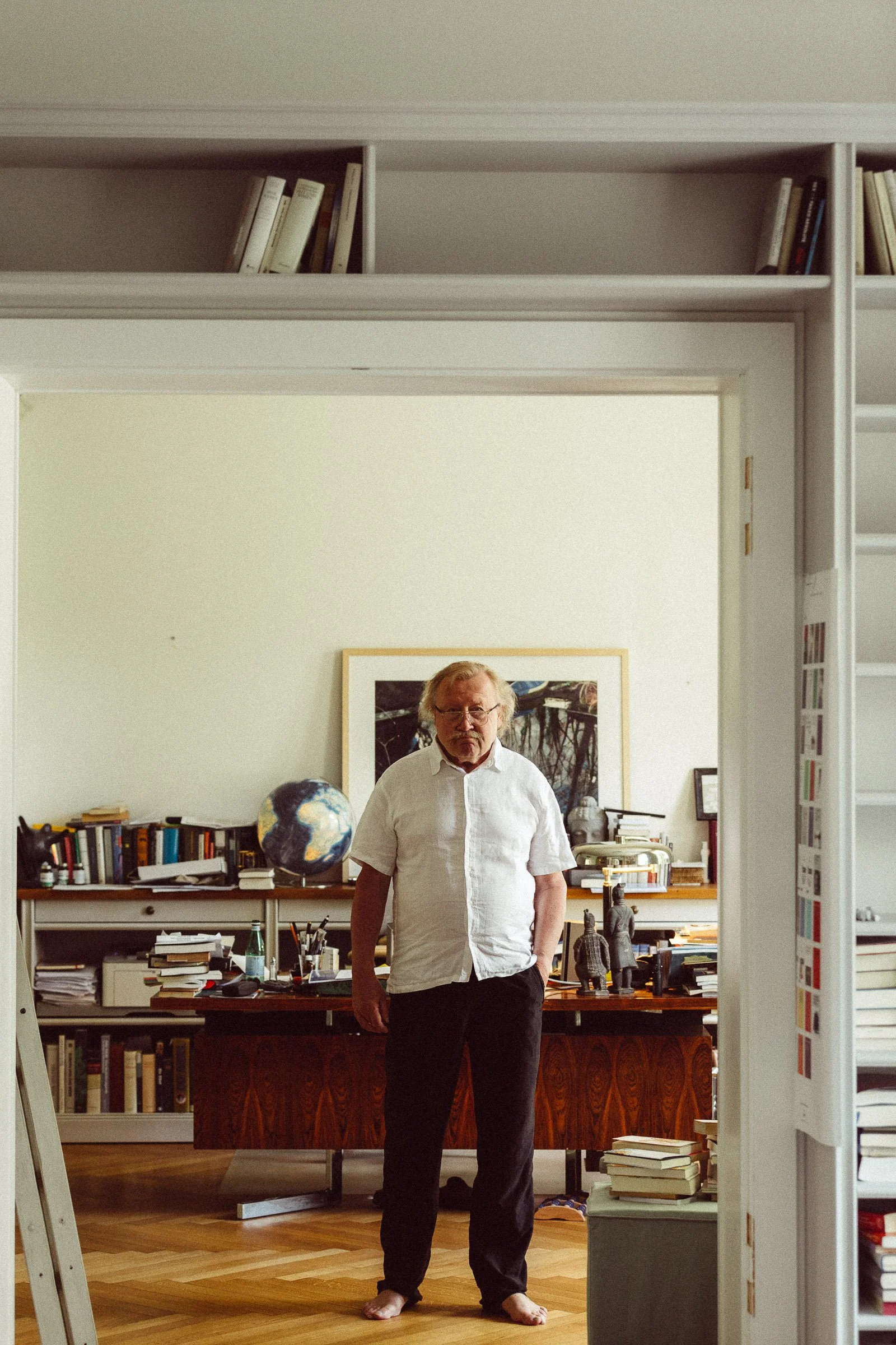 German philosopher Peter Sloterdijk photographed in his home in Berlin, for brand eins.
